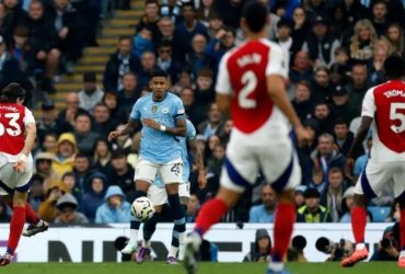 Erling Haaland scored his 100th goal as he helped Manchester City hold 10-man Arsenal to ...
